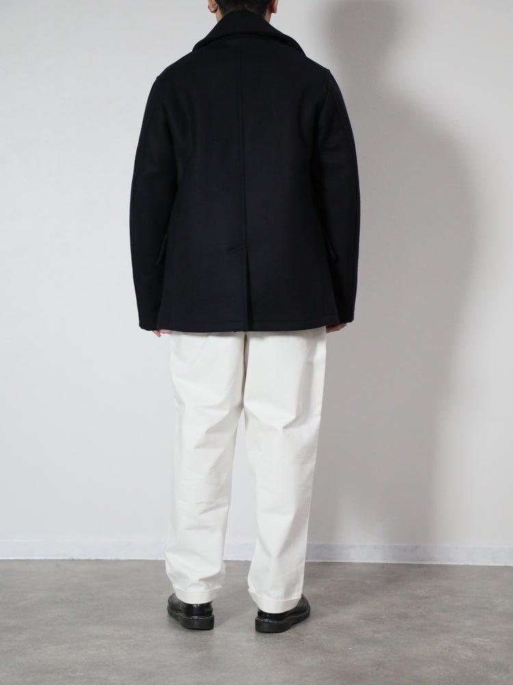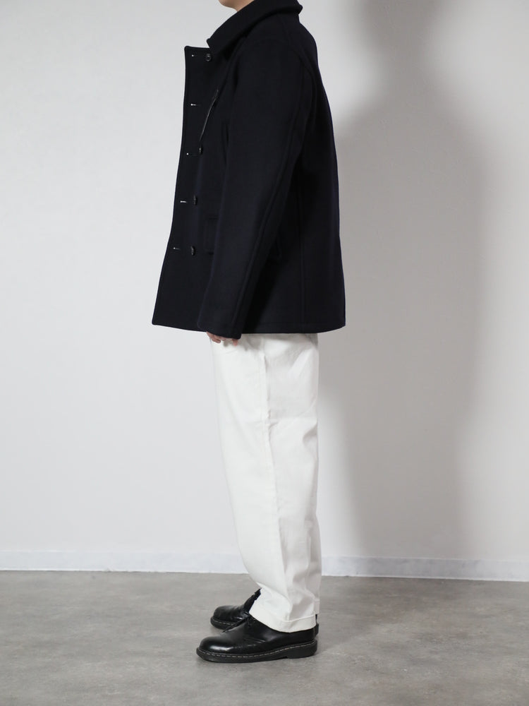 何年経っても色あせない美しい作りのメルトンPコートです。