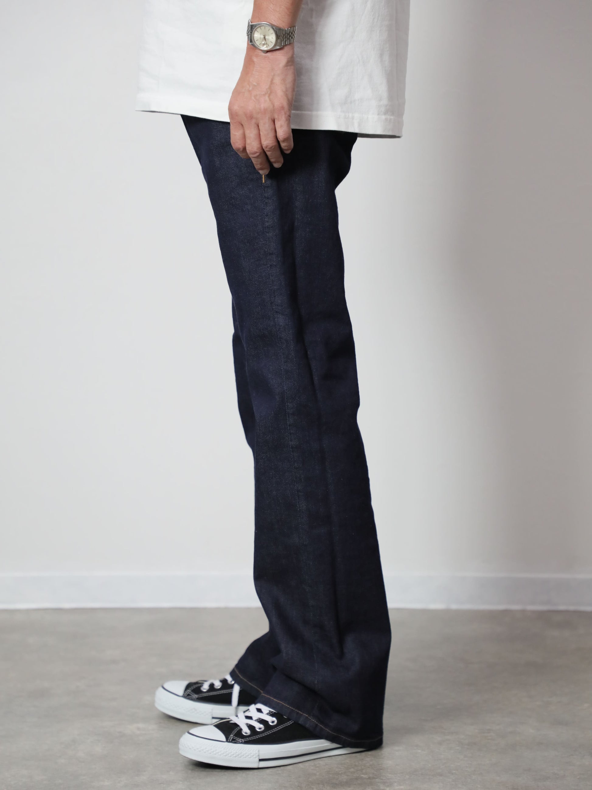 日本ではじめてセルビッチデニムを作った織屋とのコラボ商品。ヴィンテージライクの表情と若干のストレッチで着やすく仕上げています。
